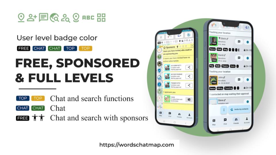 You can also contact people from other cities or countries using the TOP features of the App. You can also invite your friends so that they becomse your Sponsors once they subscribe. Read about Sponsors to use all App features for FREE.
